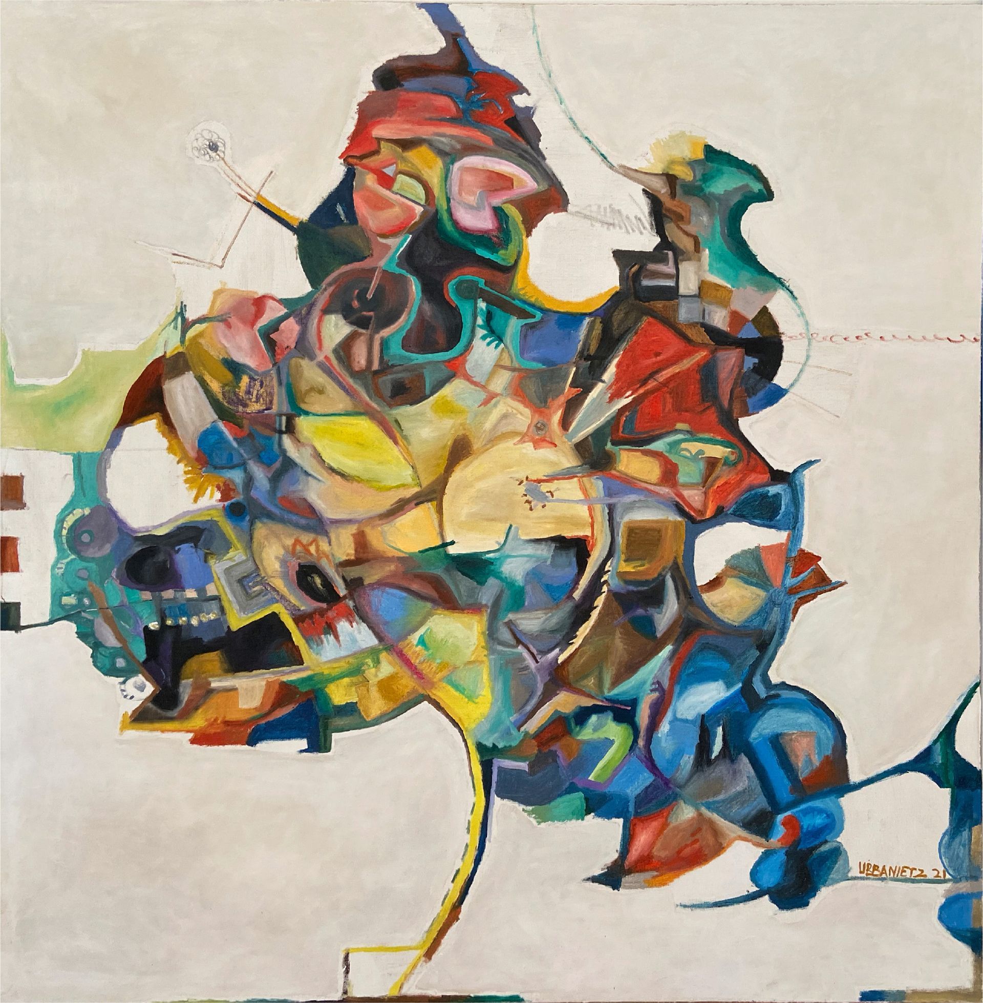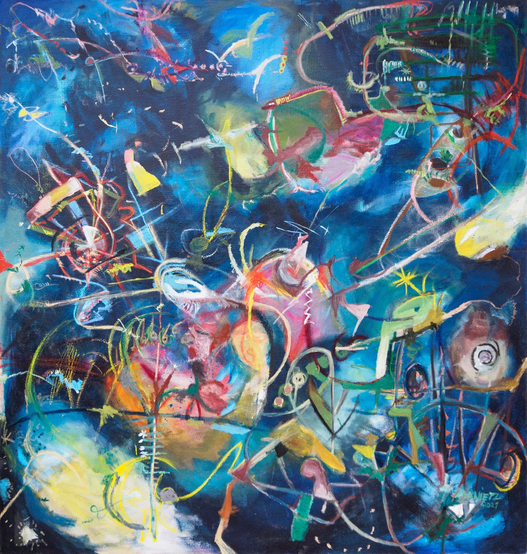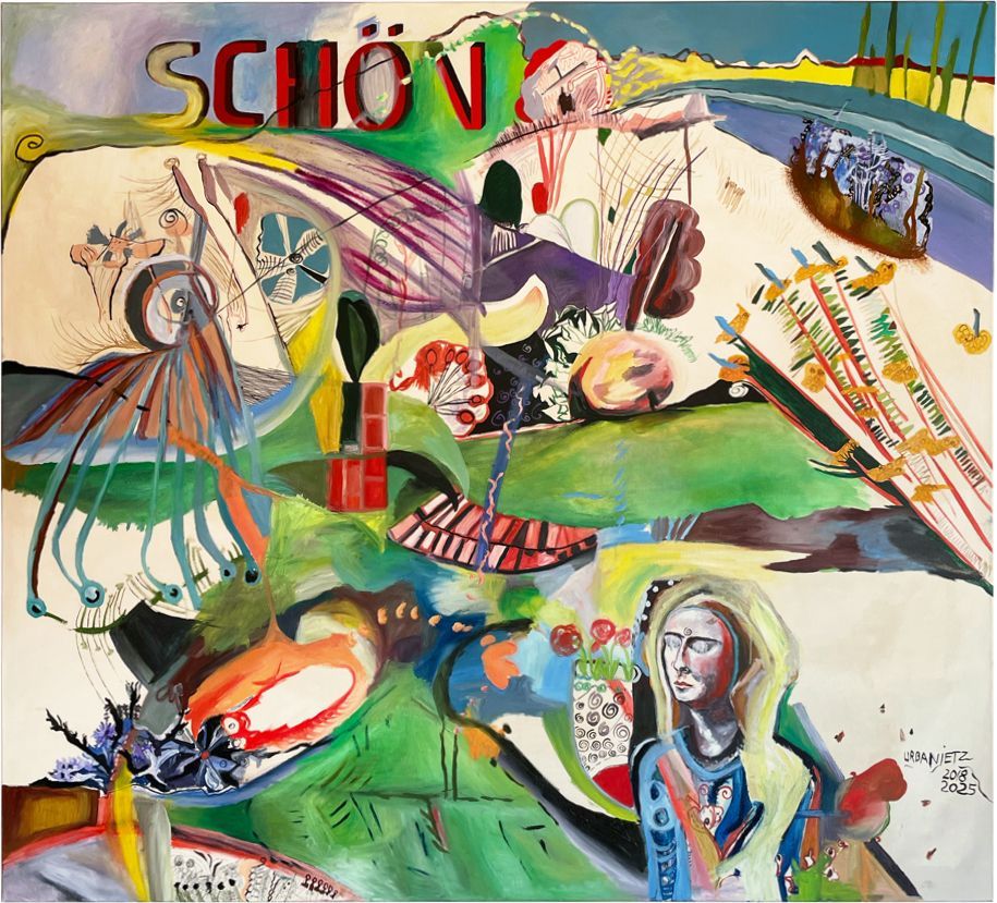 acrylic, chalk, oil on canvas, 210 x 190 cm