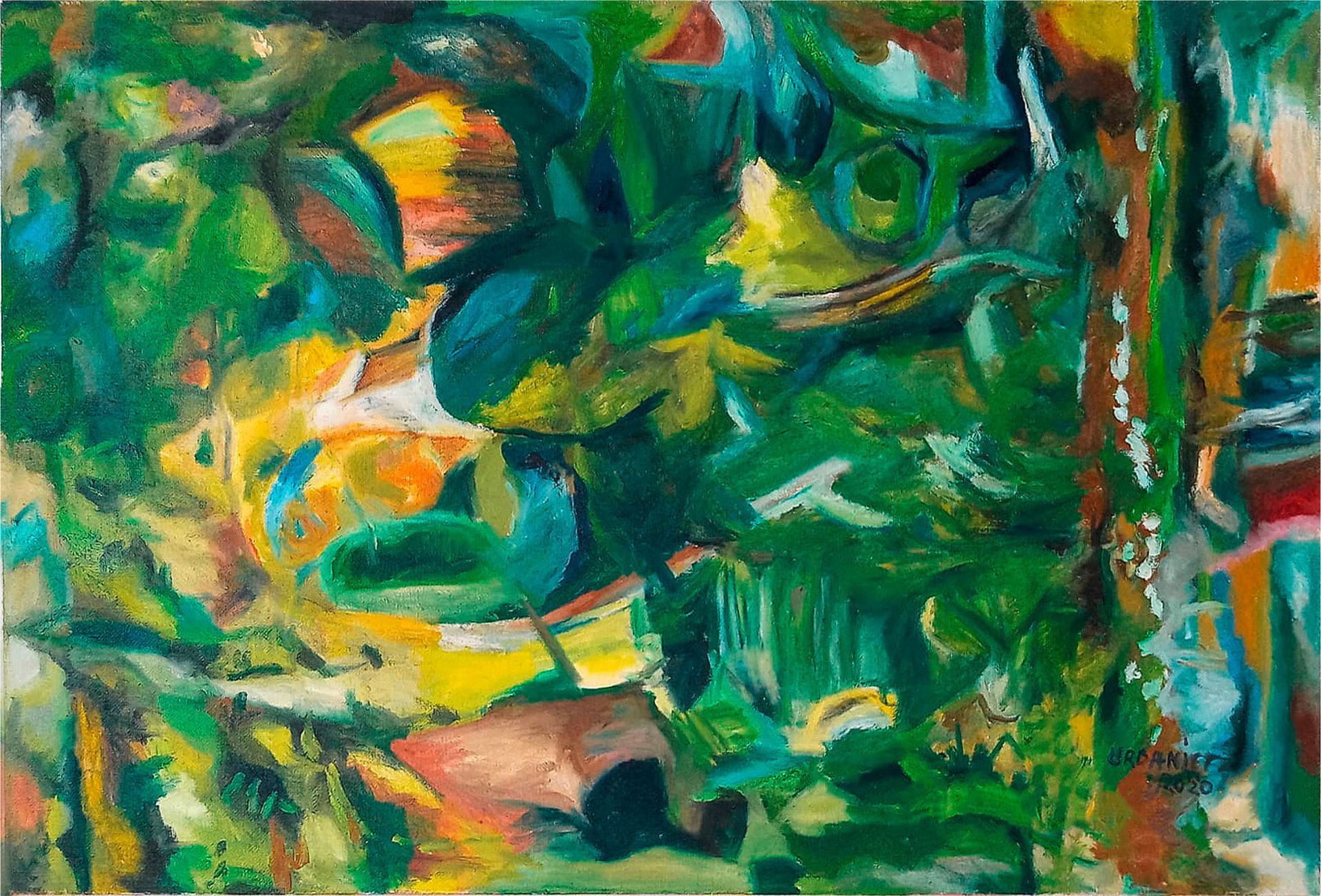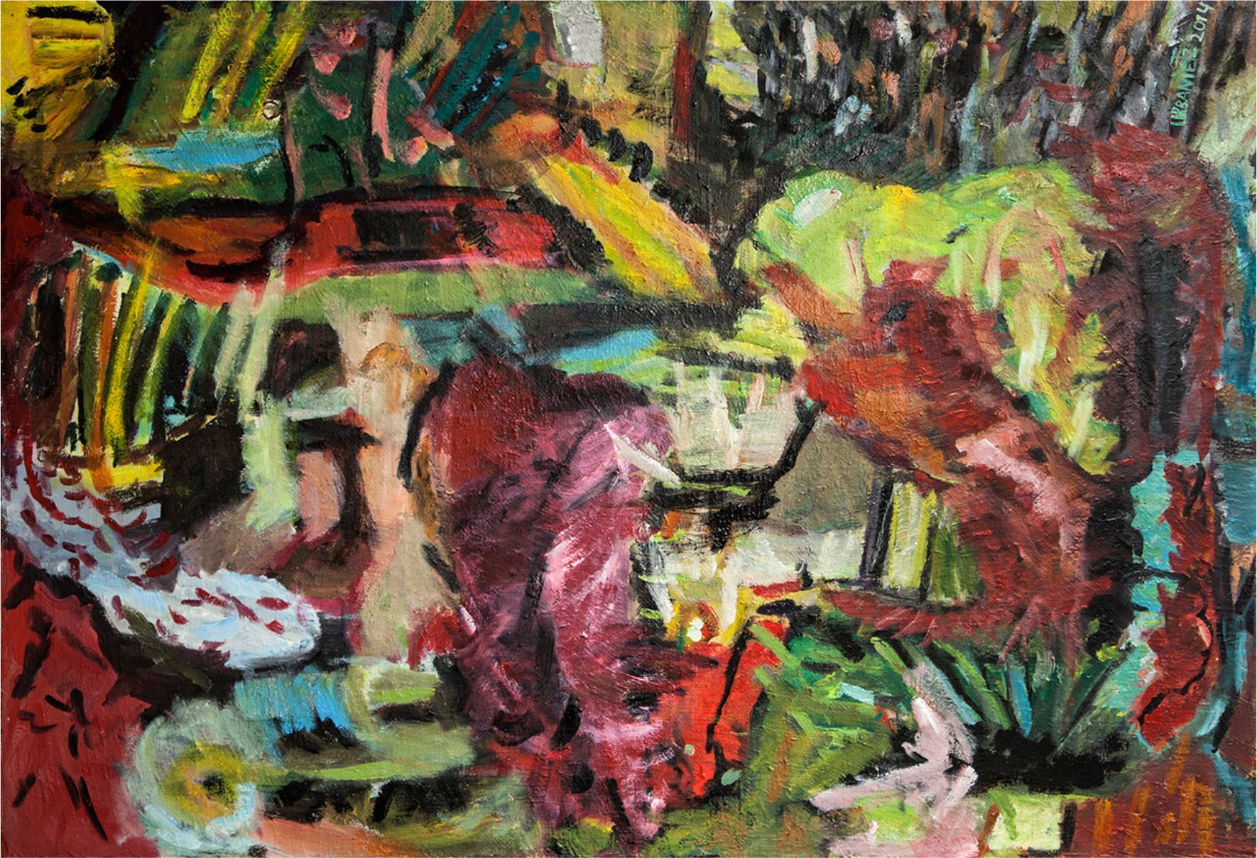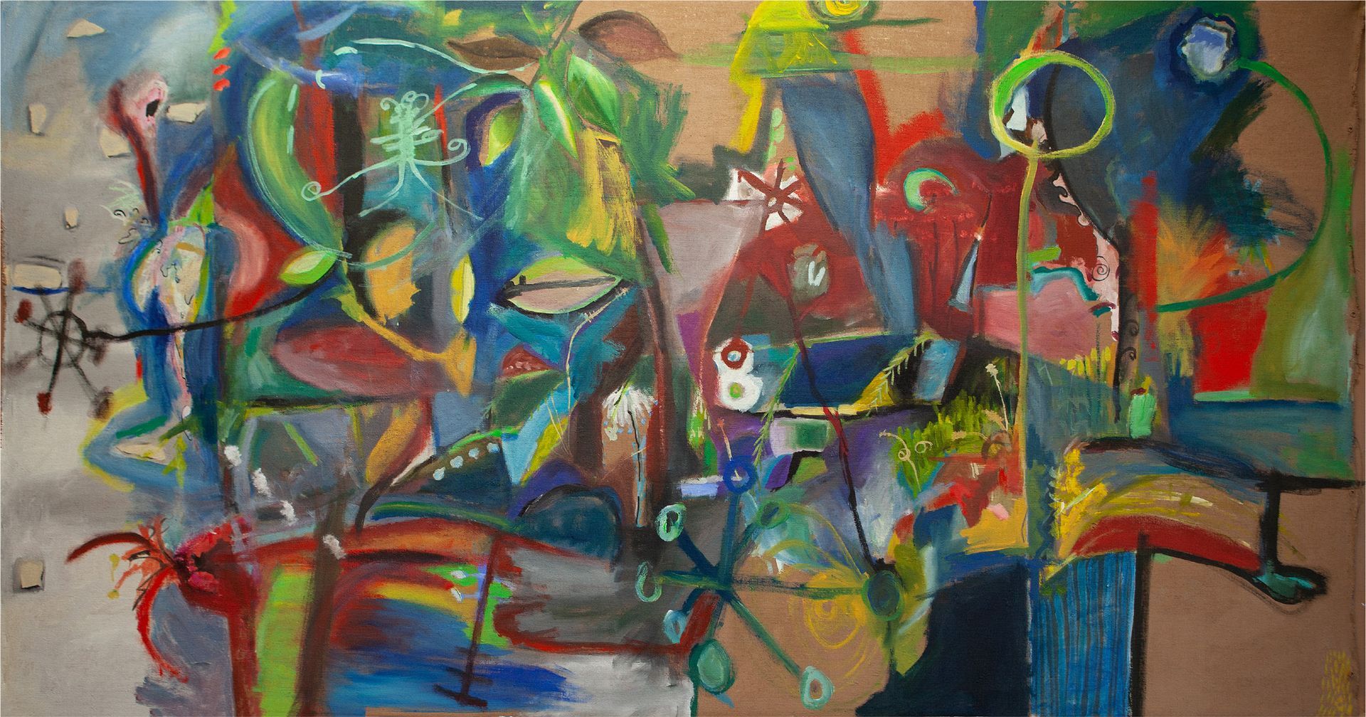 acrylic, chalk, oil on jute, 190 x 200 cm